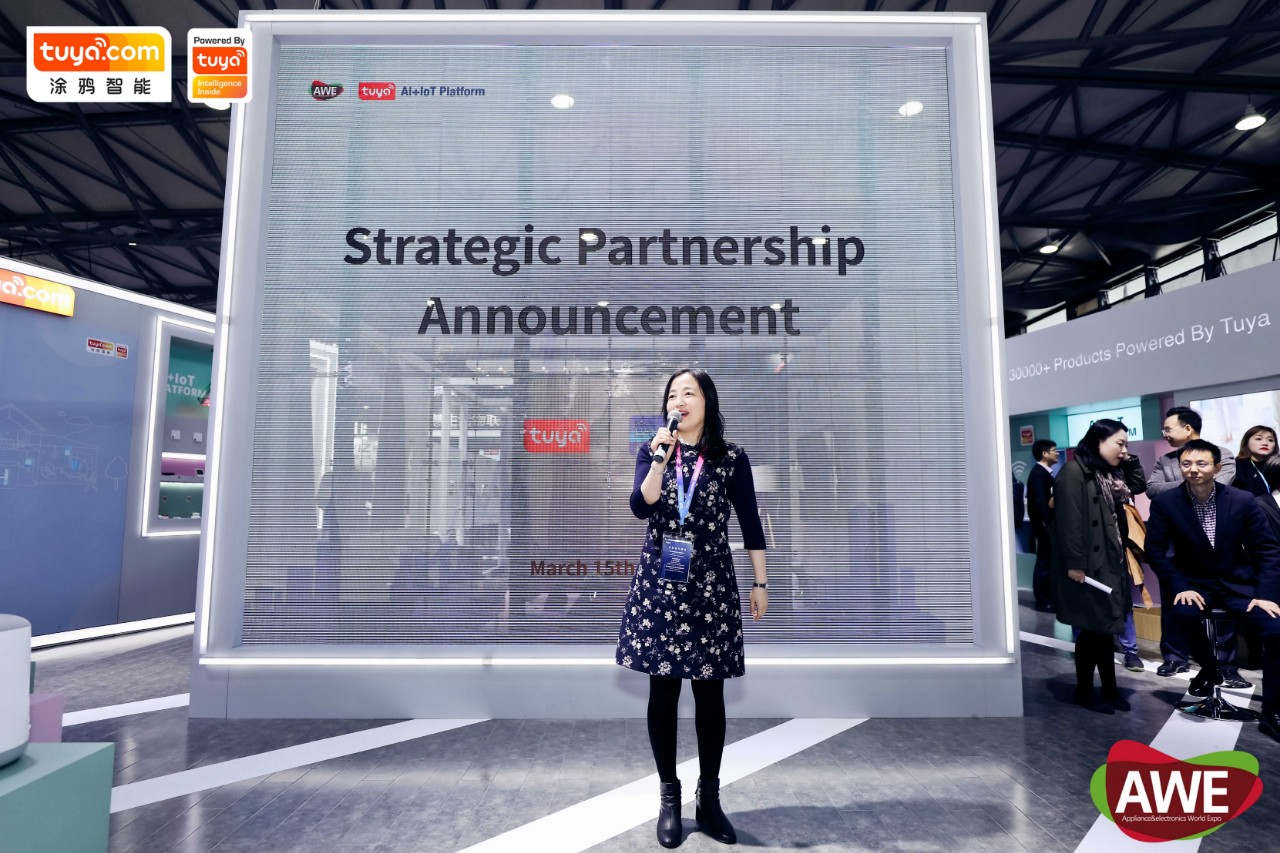 3月15日,全球化AI+IoT平台涂鸦智能与海尔U-home在涂鸦智能展位上举行了战略合作发布仪式,宣布将在智慧家电、智慧安防及智慧住宅等领域达成深度合作。