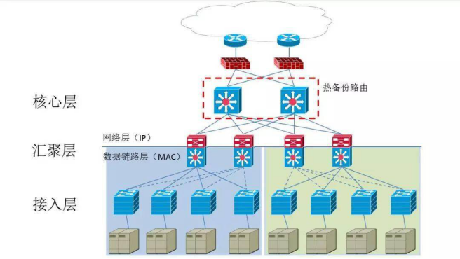 监控网络有三层架构方式:核心层,汇聚层,接入层。