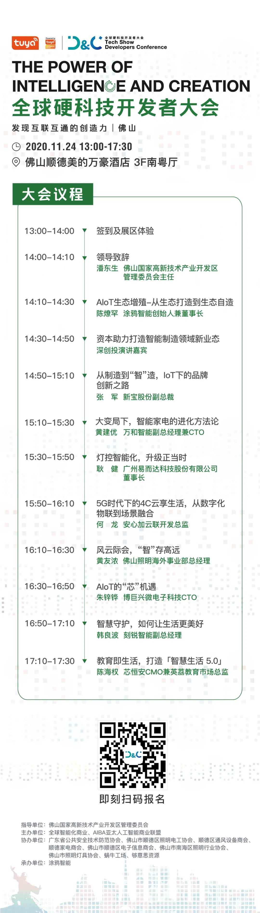 此外,佛山国家高新技术产业开发区管理委员会主任潘东生和涂鸦智能创始人兼董事长陈燎罕等重磅嘉宾也将参与大会。