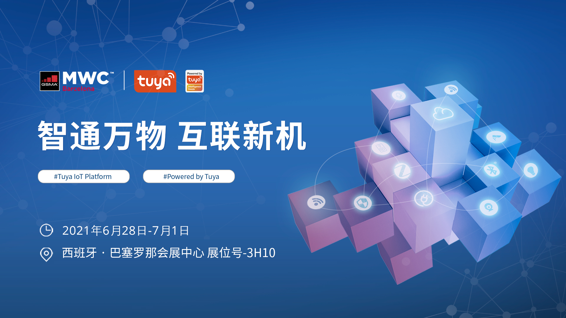 涂鸦智能参与2021世界移动通信大会(MWC2021)详情: 主办方:全球移动通信系统协会(GSMA) 时间:2021年6月28日~7月1日 地点:西班牙巴塞罗那 涂鸦展台地址:巴塞罗那会展中心3H10