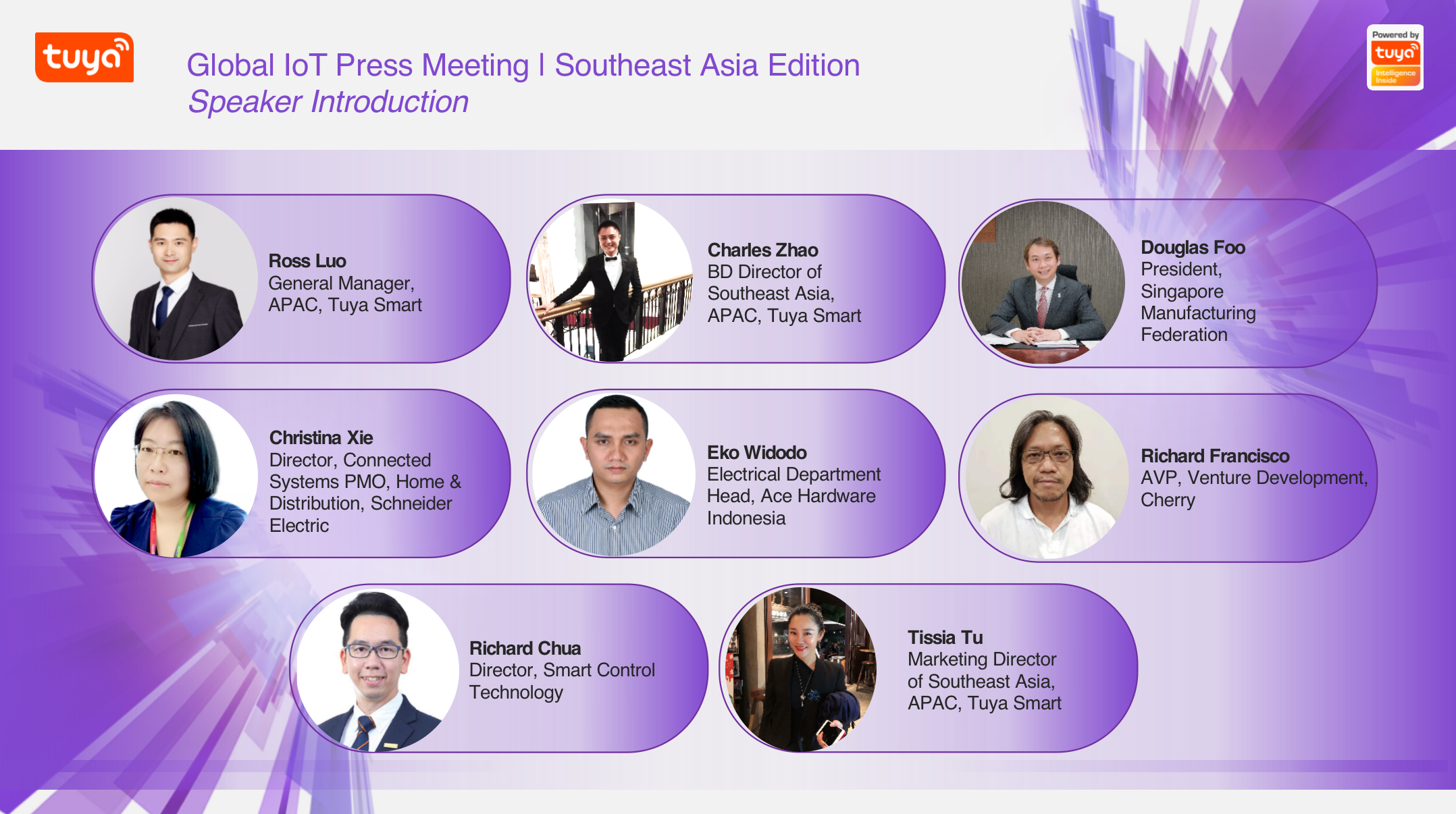 东南亚本地知名物联网品牌Ace Hardware Indonesia、Cherry Mobile和SCT,携手全球知名品牌施耐德电气(Schneider Electric)和新加坡制造商总会(SMF),共同出席了该会议。涂鸦智能亚太大区总经理罗志军与东南亚商务总监Charles Zhao也在会上进行行业洞察分享。
