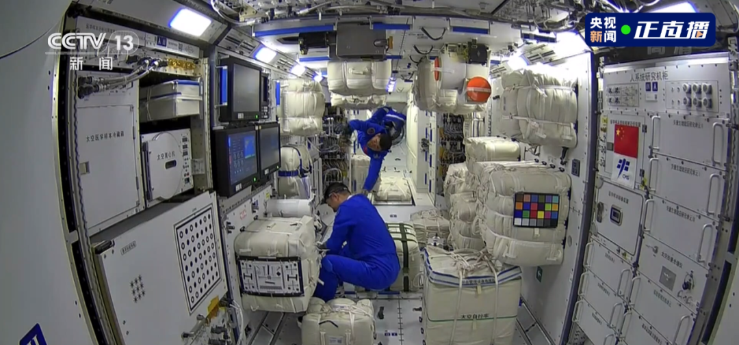 固定在舱壁上的睡袋才让人惊觉,这一切发生在40万米的太空——中国空间站内舱里。