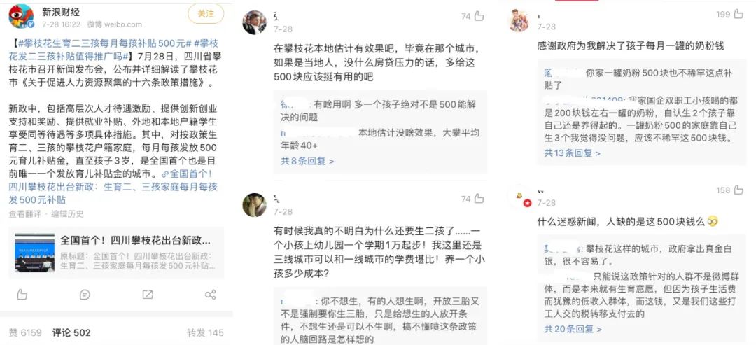 政策出台后引起热议,不少网友认为实实在在的补贴的确能够有效提升生育率。然而也有网友提出,养孩子过程中要付出的心力或许并不是单纯依靠补贴可以解决的。
