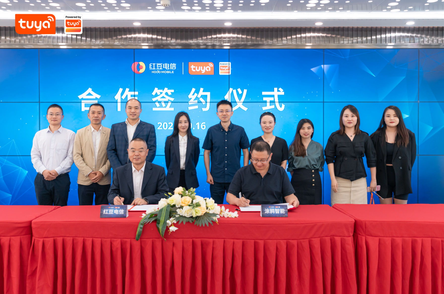 9月16日,中国知名虚拟通信运营商红豆电信与全球化IoT开发平台服务商涂鸦智能(NYSE: TUYA,HKEX: 2391)于杭州举行签约仪式,宣布正式达成合作。红豆电信CEO周致琪、常务副总杨磊益、物联网事业部销售总监陈珂屹、产品经理支军、项目负责人朱家东,以及涂鸦智能联席董事长兼总裁陈燎罕、涂鸦智能副总裁兼出行事业部总经理孙新涛、涂鸦智能高级产品专家杨清会、涂鸦智能出行事业部商务经理余欢、涂鸦智能出行事业部商务经理张靖、涂鸦智能大市场&战略合作部高级市场经理林鹭鹭,出席了本次签约活动。