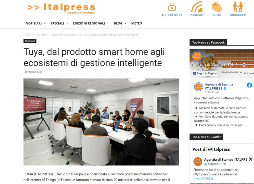 《Italpress》成立于1988年,是意大利综合信息领域的头部媒体。在其5月23日发表的题为《涂鸦智能,从智能家居产品平台向打造全面的智能家居管理生态系统转变》的文章中指出,涂鸦智能帮助意大利企业打造了更具市场竞争力的智能产品。同时,涂鸦在空间智能化的能力,也将为意大利开发者带来更多商业可能性。