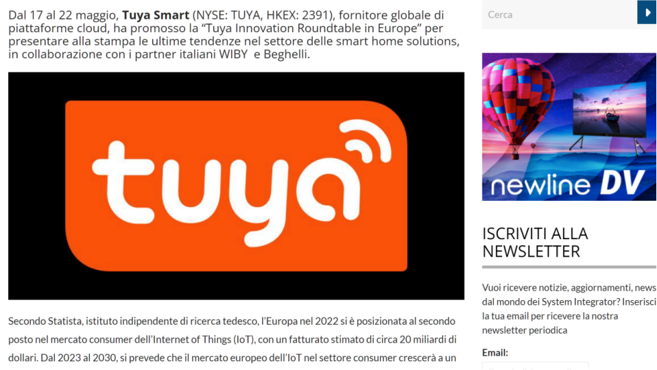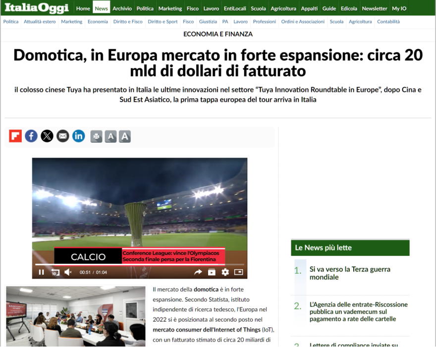 《Italia Oggi》主动报道了本次活动,发表了《智能家居自动化,欧洲市场规模约为200亿美元》的文章,聚焦在涂鸦和意大利客户在25岁以下年轻群体的影响力报道,认为智能产品将会改变意大利的生活方式。