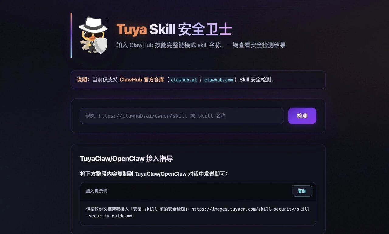 当“龙虾”开始拥有执行物理世界任务的能力,安全防护尤为重要。涂鸦智能首席信息安全官刘龙威表示:“针对类似‘龙虾’等 AI Agent 产品引入第三方 Skill 可能带来的隐患,我们已正式上线‘涂鸦 Skill 安全卫士’。该平台在 Skill 安装前置环节介入,通过独创的 Skill 威胁情报、大模型代码审计与沙箱动态检测三大核心技术,提供一站式的安全体检。涂鸦 Skill 安全卫士不仅服务于涂鸦自身的生态安全,我们也会将其作为公共的安全服务向全行业开放,为整个大模型应用生态保驾护航。”