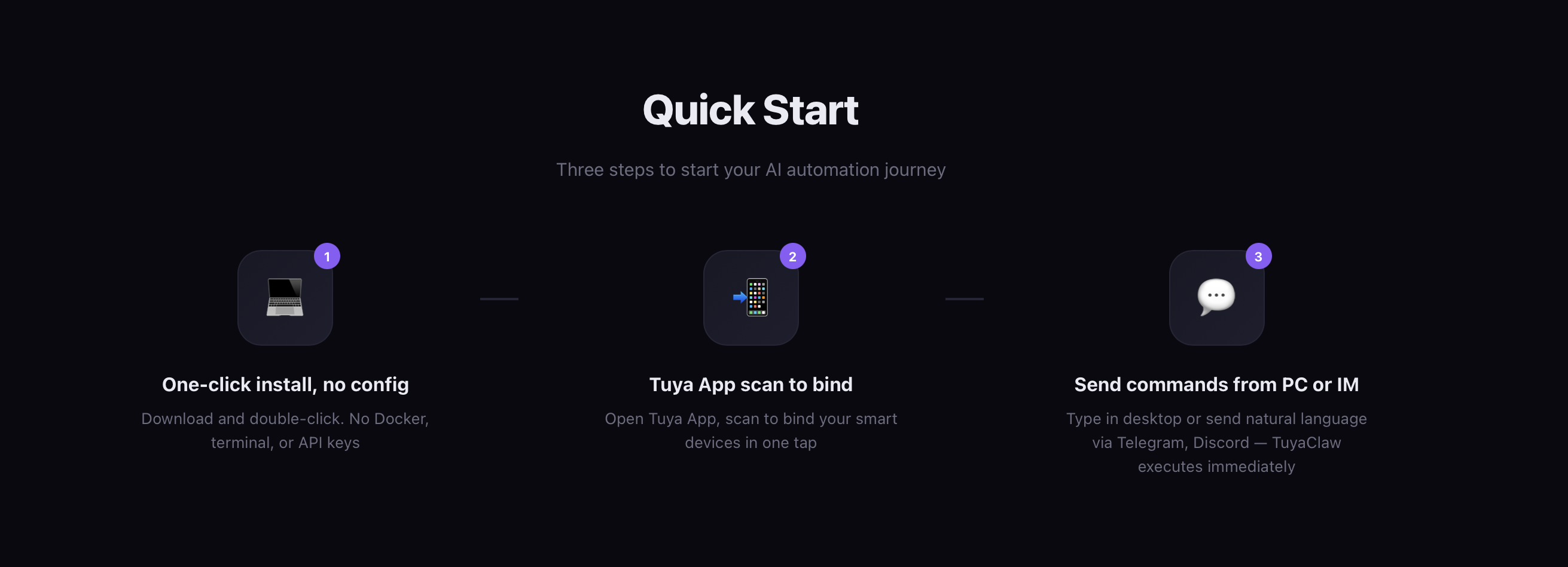 Currently, deploying OpenClaw remains a technical challenge for most users. Tuya provides a one-click installation solution that compresses hours of complex configuration into just minutes, enabling users to install and start using TuyaClaw quickly.